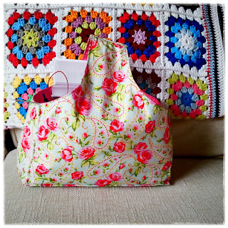 So, it would only be fair of me to start it all off.....This is my every-day project bag and it normally includes my house keys, wallet and phone; I take it with me to knitting groups and if we are going out for any amount of time and I think I might be able to sneak some knitting or crocheting in....